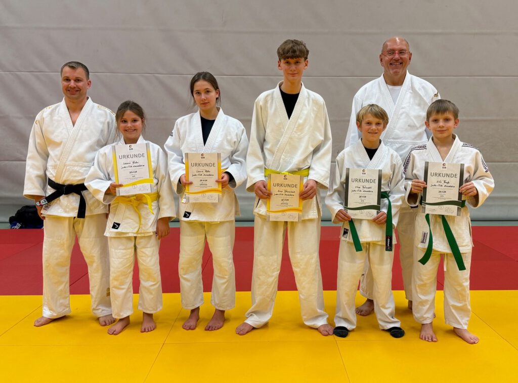 Am Montag bestanden dann Sebastian Koj die Prüfung zum blauen Gürtel und Frieder Oehlmann, Moritz Kelleter sowie Nicklas Eichler von der SG Kaarst die zum braunen Gürtel.